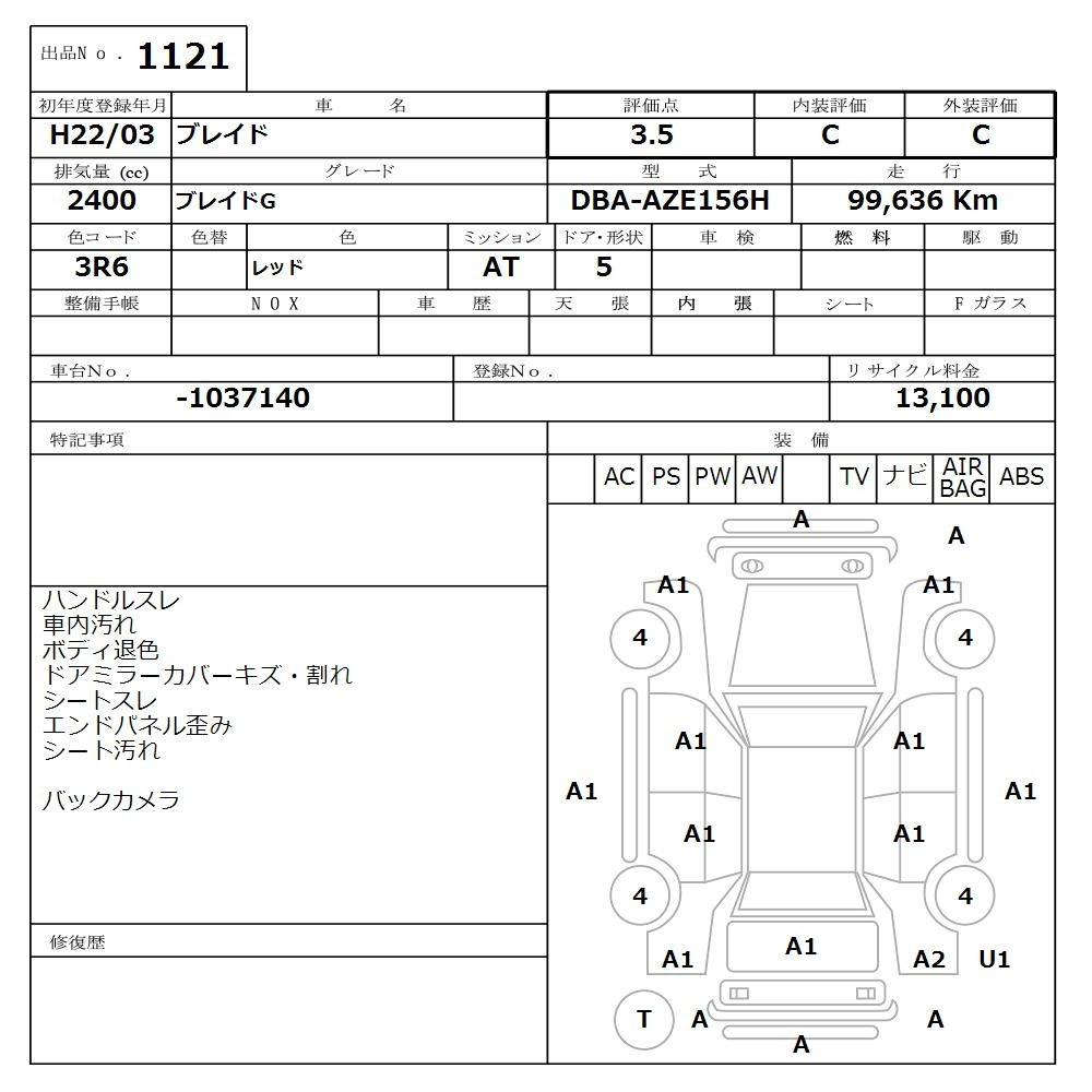 Toyota Blade, 2010